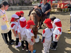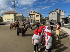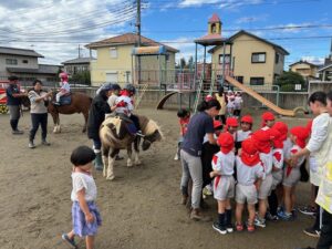 今年はさくら組のお友達がポニーとのふれあい、乗馬体験を行いました。