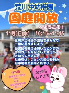 本日は荒川沖幼稚園のおいもほりでした。本来は2日間に渡っておいもほりが行われる予定でしたが、明日は悪天候が予想されているため、本日3学年いっしょに行われました。