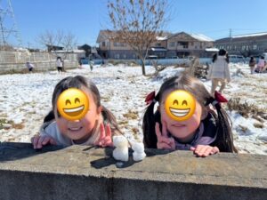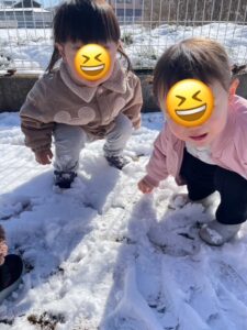 2月9日(月)前日に沢山の雪が降ったので、園庭や畑で雪遊びを行いました!「初めて」の子もいて、みんな「手が冷たい~」と言いつつも、夢中で遊んでいました♪