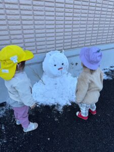 小さい子は職員が作った雪だるまに興味を示しつつも「ちょっと怖い」かな?
