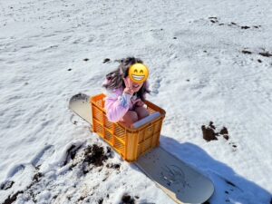 畑では「手作り」の即席ソリに乗りました🛷