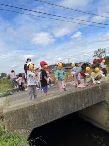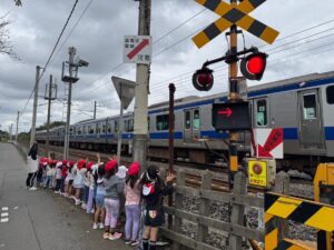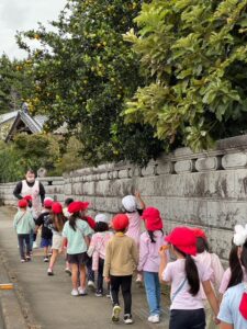 年長組と年中組で散歩に出かけました!涼しくなってきたので少し距離を伸ばして1㎞ほど歩いて「踏切」まで歩きました。