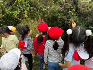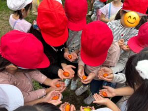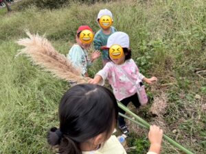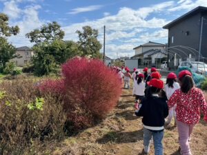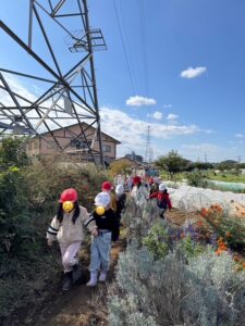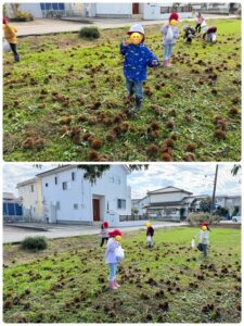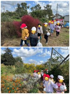 今年も栗拾いの季節がやってきました!長靴を履いて、手をつないで子どもたちはルンルンで出かけました!道中にはきれいな花も咲いています♪