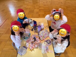 お昼は白帆幼稚園のホールで食べました!お家の人が作った「おにぎり」をあっという間に食べてしまいました!