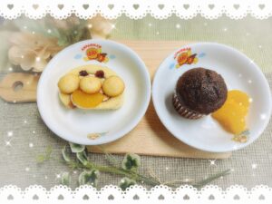 お楽しみのおやつは未満児が「アンパンマンケーキ」以上児が「チョコマフィン」でした!
