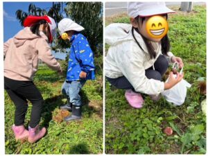 10月21日、保育園の畑で「お芋ほり」を行いました。土深くに埋まっている芋を宝探しのように掘りました!掘り上げたときの子どもたちの笑顔はキラキラしていました♪