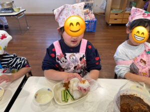 1月生まれの誕生会がありました。先生からの出し物はチョコレート鬼?の出来るまでを楽しくお話にしてくれました♪