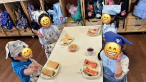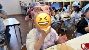 少な目の子、多めにたっぷり塗る子…と個性が見られましたが、みんな自分で作ったジャムパンを大きな口で美味しそうに食べていました♪