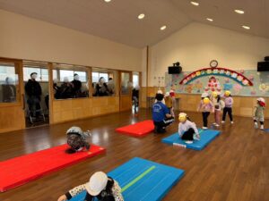 2月17日(火)ゆり組(4歳児)の体操参観がありました。お家の人の前で1年間練習してきた「マット運動」や「跳び箱」を披露しました!