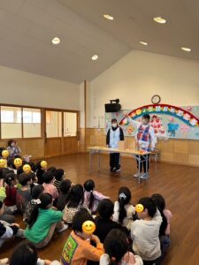 2月生まれの誕生会がありました。先生からの出し物は「マジック」色水を使ったマジックに興味津々の子どもたちでした♪
