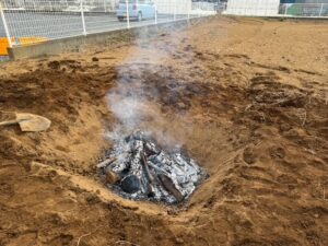 毎年恒例の焼き芋を行いました。秋に収穫して寝かせておいた芋を使います!畑に穴を掘って薪を燃やして準備…