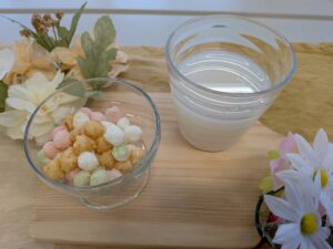 おやつは「ひなあられ」と「カルピス」普段は出てこないカルピスに大喜びの子どもたちでした♪