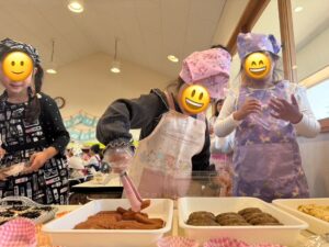 ドーナッツの上にホイップや果物、コアラのマーチまでデコレーションされていて大喜びの子どもたちでした♪