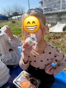 作ったお弁当は隣の栗畑にシートを敷いてみんなで食べました!外で食べる自分で作ったお弁当はまた一味違いますね♪