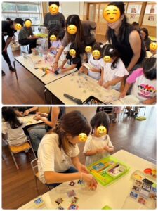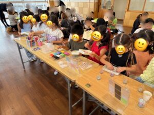 ゆり組(年中)でマシュマロを使ったお菓子作りをしました!マシュマロを溶かしてシロップと混ぜて、ドロドロになった生地が冷やし固めるときれいに分離!!涼しげなスイーツが出来上がります!