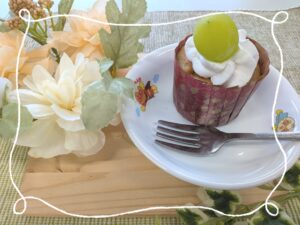 おやつは「シャインマスカット」を使った「カップケーキ」贅沢な一品をみんなペロリでした♪