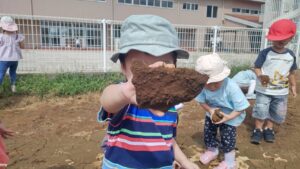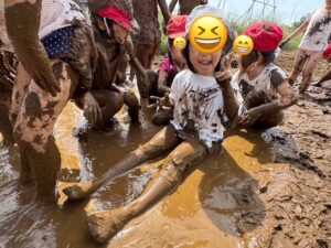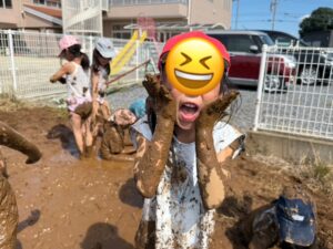 さくら組(年長)、ゆり組(年中)で「泥んこ遊び」を行いました!去年も経験している「さくら組」初めての経験の「ゆり組」でしたが、どちらもアクロバティックに泥の中へダイブしていました♪お洗濯は大変でしょうが…たまにはいいですよね!?