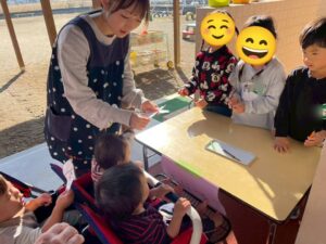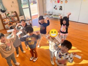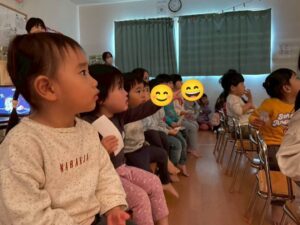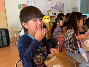 集会では、七五三の由来のお話しを聞いたり、飴袋の製作発表をしました😊