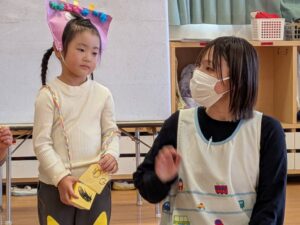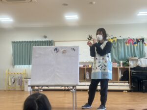集会では節分の由来のお話しを聞いたり、パネルシアターをみました😊