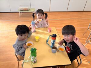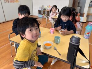 みんないつもと違うご飯に少し戸惑いながらも、「おいしい~!」と言って食べていました😍