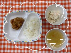 コロコロサラダは、じゃが芋、枝豆、コーン、ハムをイタリアンドレッシングで合えます🥢