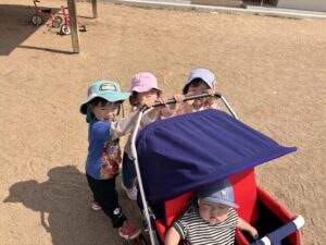 外でやるよりも通路が狭く、子どもたちもワクワク🤗