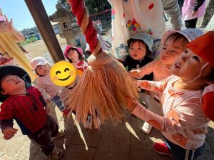 ハロウィン集会のあとには、すみれ、ゆり、さくら組さんで仮装をしたまま近所をまわってトリックオアトリートをしに行きました🤩