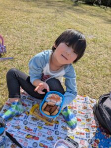 お昼ご飯はお家の人が作ってくれた美味しいお弁当を食べました😋