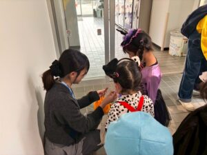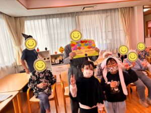 ハロウィンの由来のお話しを聞いたり、ゲームやお菓子つかみのスタンプラリーを楽しみました❣