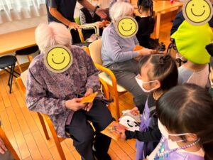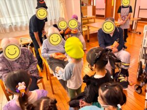 ハロウィン集会のあとには、すみれ、ゆり、さくら組さんで仮装をしたまま近所をまわってトリックオアトリートをしに行きました🤩