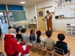 ゆり・さくらぐみのお部屋ではトナカイさんがクリスマスメドレーをオカリナで演奏してくれました😍
