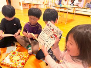 午睡後はサンタさんから、一人一人違うメッセージカードが届き、子どもたちは大喜び🤗