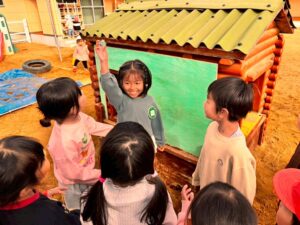 みんなで保育室や園庭を探すと、ログハウスの後ろに落ちていました😁