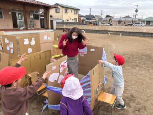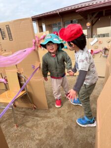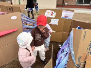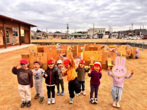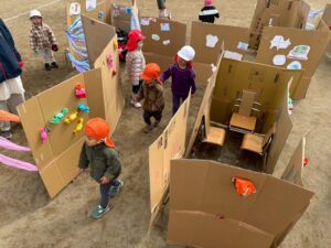 すみれぐみさんの子どもたちの『やってみたい!!』から始まった迷路作り👍