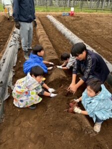 契約しています畑で一人ひとり真っ黒になりながら大きなお芋を掘ることができました。