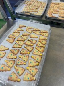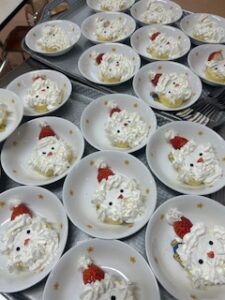 給食先生がサプライズでクリスマスクッキーを焼いてプレゼントしてくれました。一つひとつラッピングしてくださり、ありがとうございました。こどもたちの喜ぶ顔を見たいからと、おやつにもひと手間かけてサンタクロースのケーキを。何度も幸せな気持ちになることができました。