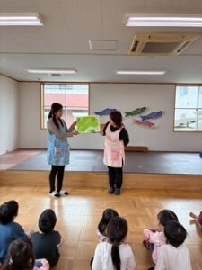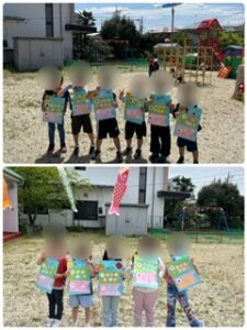 4月24日《金》こどもの日より少し早目にこいのぼり集会をしました。こどもたちみんなが元気に育ち大きくなったことをお祝いする日です。みんまがこれからも健やかに成長しますように・・・・