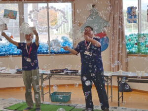 親子体操のあとは、今年もおうちの人と一緒にバルーンを!