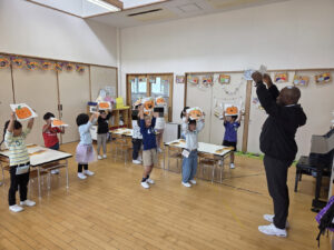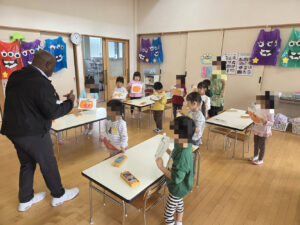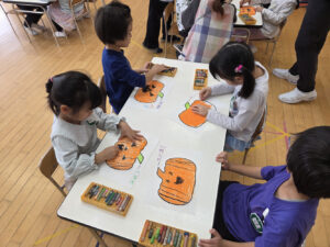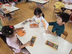 ハロウィンにちなんだ英語のお勉強に大はしゃぎ。楽しく英語に触れることができました。