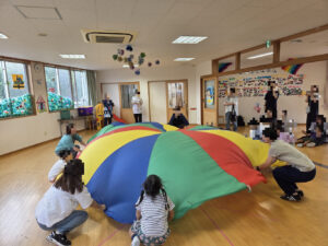 初めてでびっくりしちゃったお友だちもいたけど、おもいっきり体を動かして楽しむことができました。