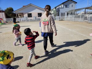 鬼のお面が付いている子たちも豆を投げる子たちも走り回るのでみんなとても楽しんでいました😊
