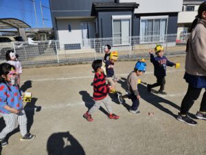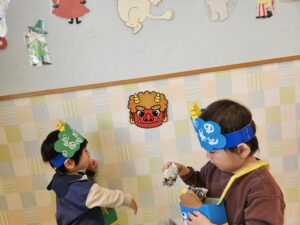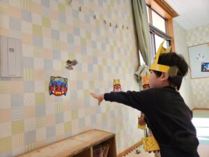 鬼のお面が付いている子たちも豆を投げる子たちも走り回るのでみんなとても楽しんでいました😊