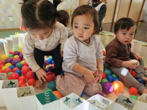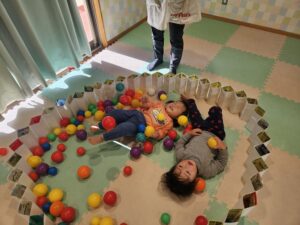 ボールプールの中で寝転んで上からボールが落ちてくるのを楽しむ子もいました!