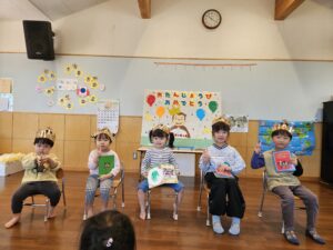 ひな祭り制作の紹介では、みんなの前に立って作品の説明や難しかったところなどを発表しました!