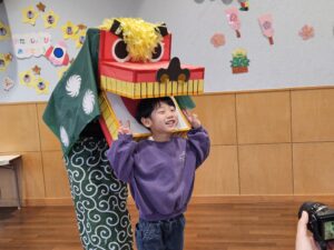 ししまいに頭を噛んでもらって、厄払いをしてもらいました!