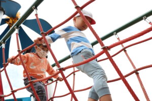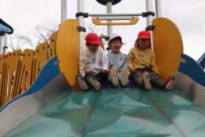 きらく山に着くと、滑り台や遊具を登ったり、渡ったり、友だちと一緒に楽しんだりと真剣な表情やたくさんの笑顔が見られました😊