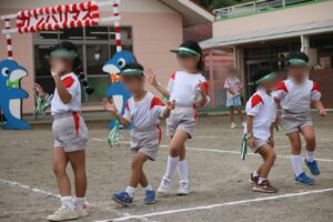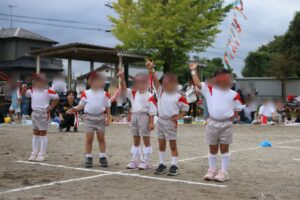 猛暑続きの夏で、園庭での練習がなかなかできなかったのですが、どの組も工夫して練習を重ね、本番では可愛らしくカッコいい演技と走りを見せてくれました。