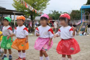 年中さんはこの一年間で素晴らしく成長できたと実感できる内容でした。お遊戯も上手にできました。