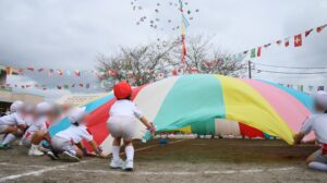 年長さんの組み立て体操は感動的でした。バルーンは風も味方してくれて、今までで最高の高さまでポンポンが飛び、とてもきれいでした。紅白リレーの白熱した走りで年長さんの逞しさを感じさせてもらいました。親子競技では、圧倒的な数のお父さんに交じってお母さん、お姉ちゃんも参加してくださいました。ご協力ありがとうございました。鼓笛は閉会式の後に行いましたが、多くの方に見ていただき堂々とした姿を披露することができたと思います。