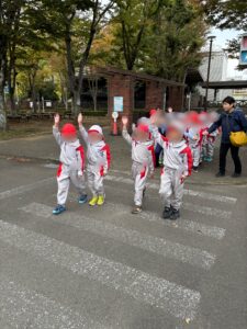 10月23日(木)、つくば市のさくら交通公園で、年長クラスは交通安全教室に参加しました。就学に向けて、改めて歩道の渡り方を学んだり、阿見町交通安全教化員さんから交通安全に関するクイズ形式のお話を伺ったり、体操の先生や保護者の皆様にお手伝いいただいて自転車の乗り方を学んできました。